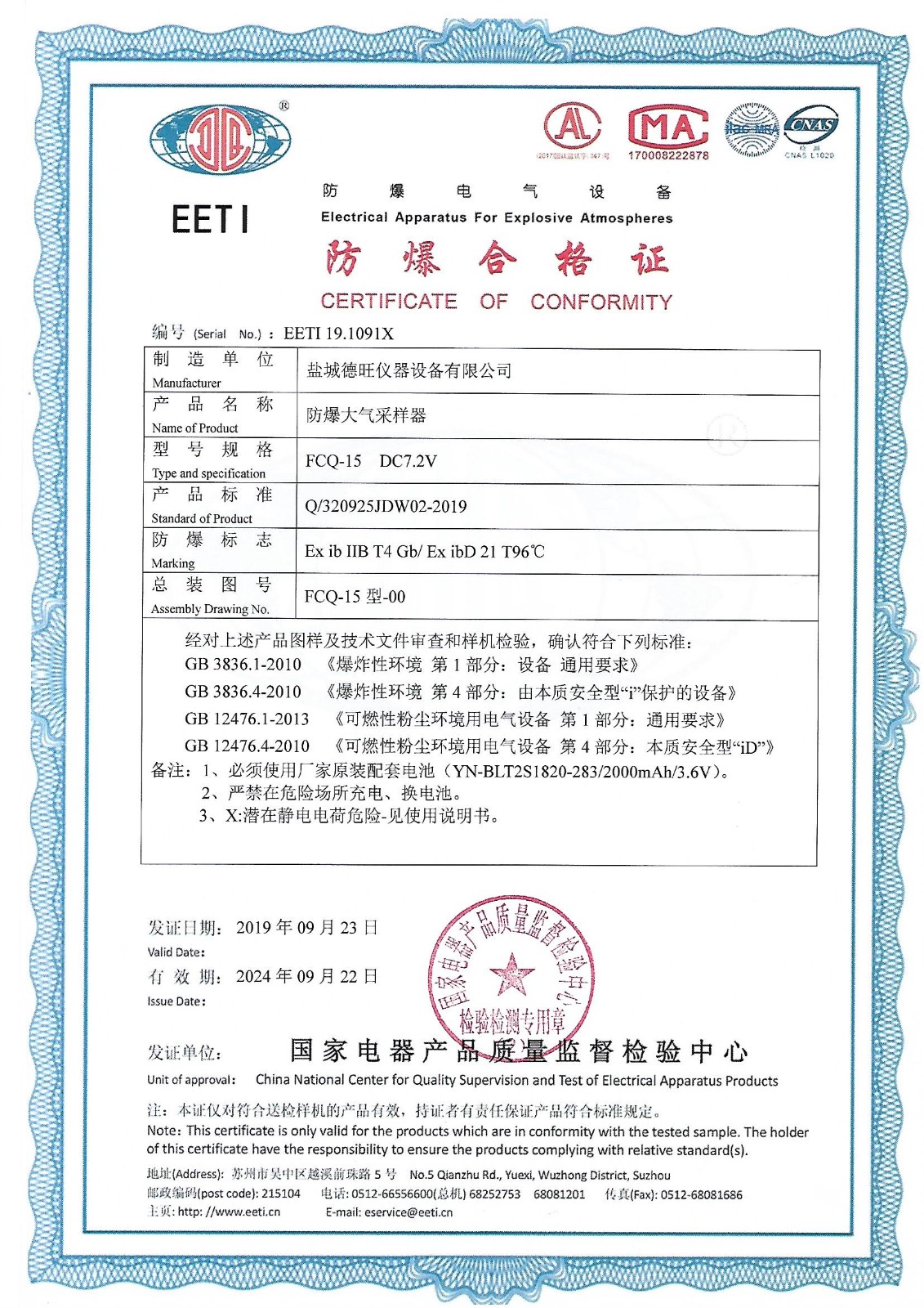 鹽城德旺儀器設備有限公司防爆大氣采樣器FCQ-15